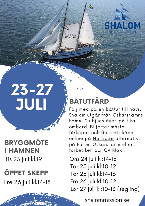 Under O-Ringen erbjuder Missionsbåtsföreningen Shalom möjligheten att följa med på en båttur ute till havs. Ta chansen att uppleva Oskarshamn från havssidan.